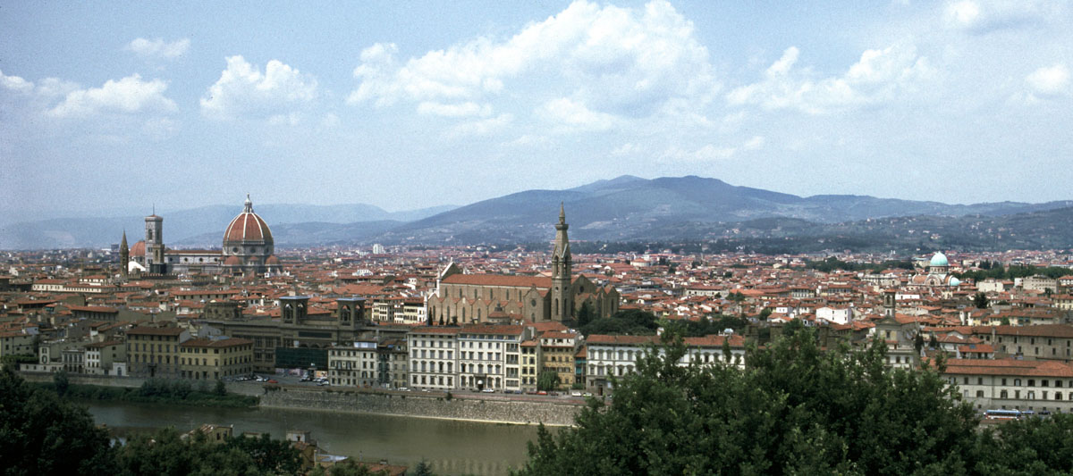 We took some photos, and soon, predictably, Gumby and Liz had mysteriously vanished. Debbie and I stood at the stone railing, gazing at Florence, and without warning fireworks started to burst over the old city. Probably they had something to do with the same celebration that brought on the Verdi concert, I don’t know. At the moment, as such things will do, they seemed designed personally for Debbie and me. I felt her shiver beside me, even though it was warm out.